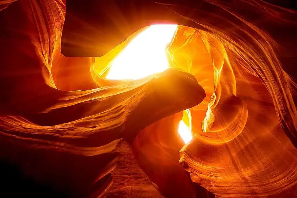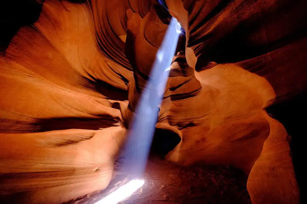 หนึ่งในจุดที่ได้รับความนิยมมากที่สุดคือการถ่ายภาพลำแสงที่ส่องลงมาผ่านช่องแคบของ Upper Antelope Canyon แสงแดดที่ส่องลงมาในช่วงกลางวันจะสร้างลำแสงที่สวยงามและน่าทึ่ง การถ่ายภาพในจุดนี้ต้องการการจับเวลาที่เหมาะสมเพื่อให้ได้ภาพที่สมบูรณ์แบบ